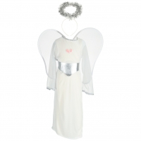Andělský kostým bílý, velikost: 100-110 cm. Rozměry balení: 32 cm x 41 cm x 2 cm.