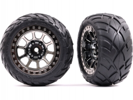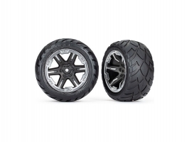 Kompletní přední kola pro auta 1:10 (Bandit). Disk černě chromovaný. Pneumatiky Anaconda.