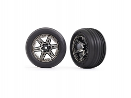 Kompletní přední kola 2.8" RXT pro elektro auta 1:10. Disky černý/polomatný chrom s nalepenými pneumatikami Ribbed a vložkou.