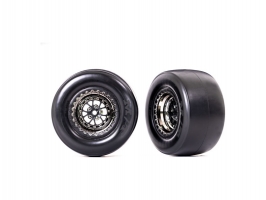 Traxxas kolo, disk Weld chrom/černý (zadní) (2 ks) s pěnovou vložkou a nalepenými pneumatikami. Zadní dragsterová kola jsou skutečnou replikou. Speciálně vyvinutá směs pneumatik pro maximáln...