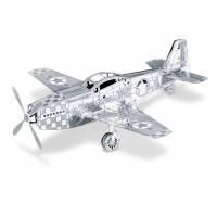 Luxusní 3D ocelová stavebnice Mustang P-51 MMS003. 1 kovová destička (11 x 11 cm), počet dílů: 12.
