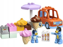 Stavebnice se stánkem se zmrzlinou inspirovaná seriálem Bluey – Vydejte se s dětmi do zábavného světa rodiny Heelerových s hračkou LEGO® DUPLO® Bluey a výlet na zmrzlinu.