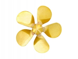 Raboesch lodní šroub tř.181 5-listý, průměr 75mm, směr otáčení levý, montáž na hřídel se závitem M5, materiál mosaz pájená stříbrem.