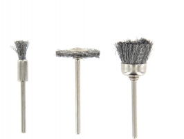 Rotacraft stopkový drátěný kartáč ocelový (3ks v balení) je určen pro šetrné čištění kovu, plastu, skla, keramiky, kamene, opravy apod. Stopka do kleštiny 2,35mm, průměr cca 5mm.