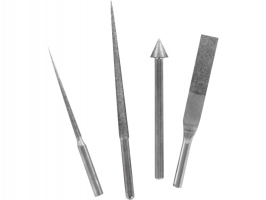 Čtyřdílná sada diamantových jehlových pilníků Modelcraft a rukojeť jsou výborným nástrojem na obrábění velmi tvrdých kovových součástí. Do rukojeti lze uložit výměnné nástroje, mají délku 45...