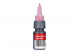 Prostředek pro zajišťování šroubových spojů kov na kov velikosti až M20 - červený, vysokopevnostní trvalý spoj, rozebíratelný po nahřátí. Balení: 10ml lahvička.