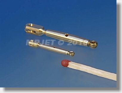 Mosazné napínáky, pravá koncovka s drážkou (pro montáž na plechový závěs), levá koncovka standardní oko. Otvor ve střední části tělesa pro vložení čepu za účelem snadného nastavení. Možno pojistit vázacím drátem. Pracovní délka 39-60 mm.