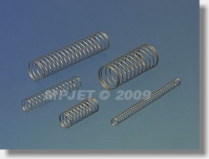 Tlačné pružiny, z patentovaného ocelového drátu průměr 0,3 mm, stabilizované. Tvar včetně závěrných závitů. Balení obsahuje vždy po 2 ks pružiny o rozměrech: pr.3x10, pr.3x15, pr.3x25 a pr.3x40.