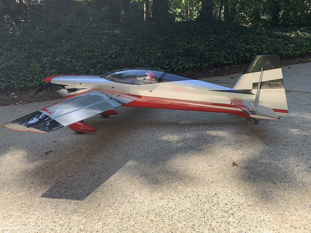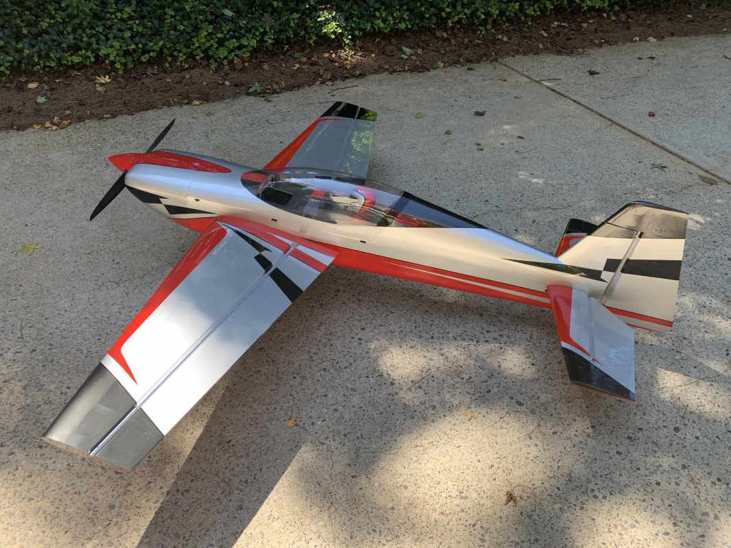 Sportovní polomaketa akrobatického letadla pro pohon benzínovým motorem 85-130 ccm pro zkušené piloty pro létání klasické přesné i extrémní 3D akrobacie.