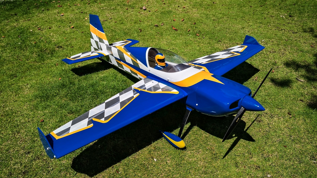 Sportovní polomaketa jihoafrického akrobatického letadla pro pohon benzínovým motorem 150-180 ccm pro zkušené piloty pro létání klasické přesné i extrémní 3D akrobacie.