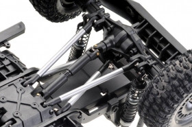 Realistický kovový CNC frézovaný 5mm rám s klasickými hliníkovými 4linky na kterých jsou zavěšené obě nápravy.