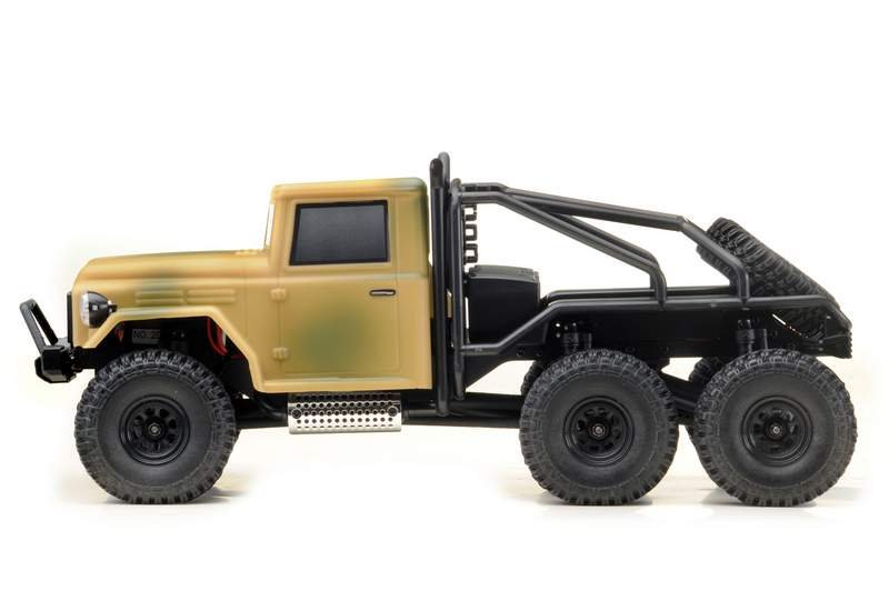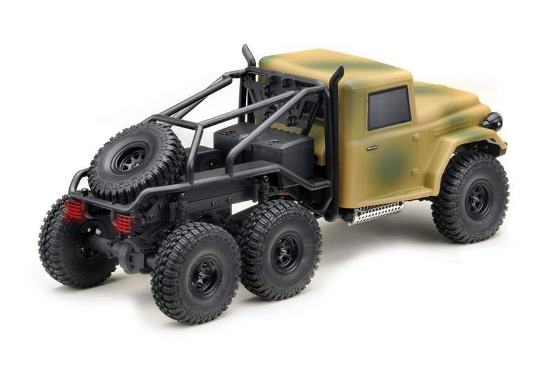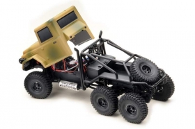 Malý expediční model s pohonem 6x6 vhodný do kanceláře, obýváku, případně i na zahradu. Model má díky trvale uzavřeným diferenciálům a 6x6 pohonu vyšší průchodnost terénem (samozřejmě vzhledem ke své velikosti) než stejné modely s pohonem 4x4. Podvozek je navržený stejně jako velké expediční speciály 1:10, tzn. kovový rám, plus pevné nápravy zavěšené na klasické 4linku (+2linku). Tlumiče jsou plastové bez olejové náplně. Kovové tlumiče je možné dokoupit jako tuningový díl, stejně jako závaží na nápravy nebo kovové kardany. Měkké pneumatiky s velkým gripem a optimálně navrženým vzorkem výrazně pomáhají překonávat veškeré překážky. Řízení i ovládání plynu je plně proporcionální. Maketová lexanová karosérie s mnoha doplňky je vybavena LED osvětlením (přední reflektory a zadní koncová světla). Doba jízdy je 30-50min, záleží jednak na stylu jízdy a jednak na povrchu na jakém se jezdí. Nabití pohonné baterie přiloženou USB nabíječkou trvá cca 45min.
