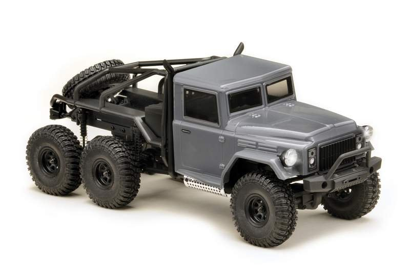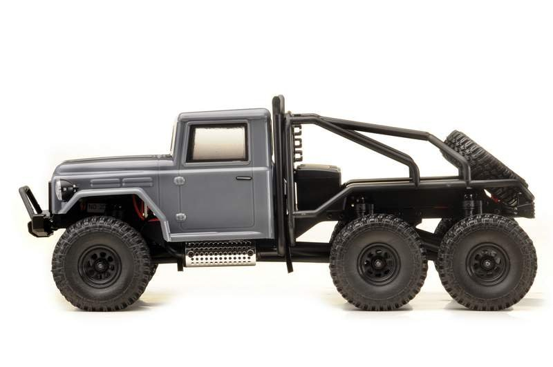 Malý expediční model s pohonem 6x6 vhodný do kanceláře, obýváku, případně i na zahradu. Model má díky trvale uzavřeným diferenciálům a 6x6 pohonu vyšší průchodnost terénem (samozřejmě vzhledem ke své velikosti) než stejné modely s pohonem 4x4. Podvozek je navržený stejně jako velké expediční speciály 1:10, tzn. kovový rám, plus pevné nápravy zavěšené na klasické 4linku (+2linku). Tlumiče jsou plastové bez olejové náplně. Kovové tlumiče je možné dokoupit jako tuningový díl, stejně jako závaží na nápravy nebo kovové kardany. Měkké pneumatiky s velkým gripem a optimálně navrženým vzorkem výrazně pomáhají překonávat veškeré překážky. Řízení i ovládání plynu je plně proporcionální. Maketová lexanová karosérie s mnoha doplňky je vybavena LED osvětlením (přední reflektory a zadní koncová světla). Doba jízdy je 30-50min, záleží jednak na stylu jízdy a jednak na povrchu na jakém se jezdí. Nabití pohonné baterie přiloženou USB nabíječkou trvá cca 45min.