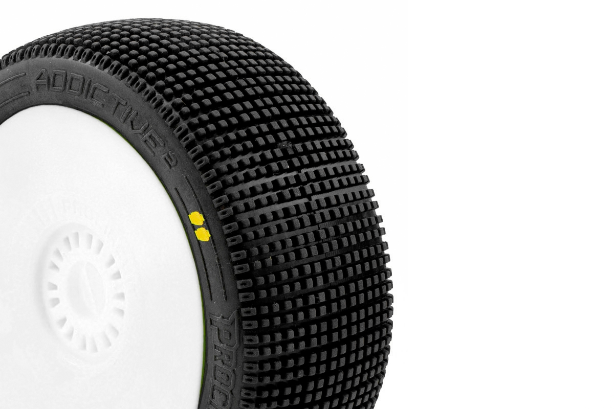 ADDICTIVE V2 BUGGY S2 (SOFT) nalepené pneumatiky, bílé disky, 2 ks.