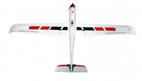 Tento kluzák je vyroben z robustní pěny EPO a je odolný vůči lehkým srážkám a nárazům. Výztuhy z uhlíkových vláken dodávají kluzáku dodatečnou strukturální pevnost. Díky tomu zůstává model stabilní a citlivý i při dynamických letových manévrech. Továrně instalovaný pohonný systém s účinným střídavým motorem 3136/1000KV a střídavým ESC Hobbywing 40A - ve spojení s 3S nebo 4S Lipo akumulátorem a velmi účinnou skládací vrtulí 10x6 - poskytuje dostatek tahu pro rychlé stoupání. V závislosti na řízení plynu a kapacitě zvoleného akumulátoru je možné dosáhnout dlouhých letových časů až 30 minut. Všechny řídicí plochy jsou vybaveny 9g digitálními servy (6x) a lze ovládat následující funkce: motor/plyn, křidélka, klapky, výškovka, směrovka. Kolečko umístěné v přední části trupu a plastové díly na koncích křídel a ocasní části umožňují také přistání na tvrdších plochách.