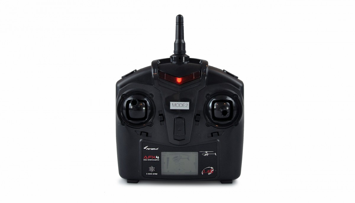AFX4 je ideální pro vstup do světa vrtulníkového létání. Tento skvělý model je díky svým přirozeně stabilním letovým vlastnostem vhodný i pro přechod z koaxiálních (dvourotorových) vrtulníků. AFX4 je dodáván s obvyklém vrtulníkářském Módu 2 (plyn vlevo), takže většina pilotů nemusí nic měnit. Díky integrovanému 6-ti osému gyroskopu a omezení zdvihu serv, lze model velmi dobře ovládat a umožňuje velmi stabilní let ve visu. Model je navíc samostabilizační. Dálkové ovládání má tlačítko pro návrat vrtulníku do stabilní výchozí polohy (režim vznášení). Pohyby sklonu a náklonu (dopředu/vzad, doprava/doleva) jsou nastaveny z výroby tak, aby pro začínající piloty nepředstavovaly větší potíže. Pokud je potřeba trochu více výkonu, například venku při silném větru, "dvourychlostní" přepínač na vysílači poskytuje větší zdvih serva pro větší náklon. S trochou cviku se můžete pohybovat velmi plynule a rychle, díky čemuž je tento vrtulník ideální jako tréninkový model do menších místností nebo hal. Doba letu se pohybuje mezi 4-6 minutami v závislosti na prostředí.