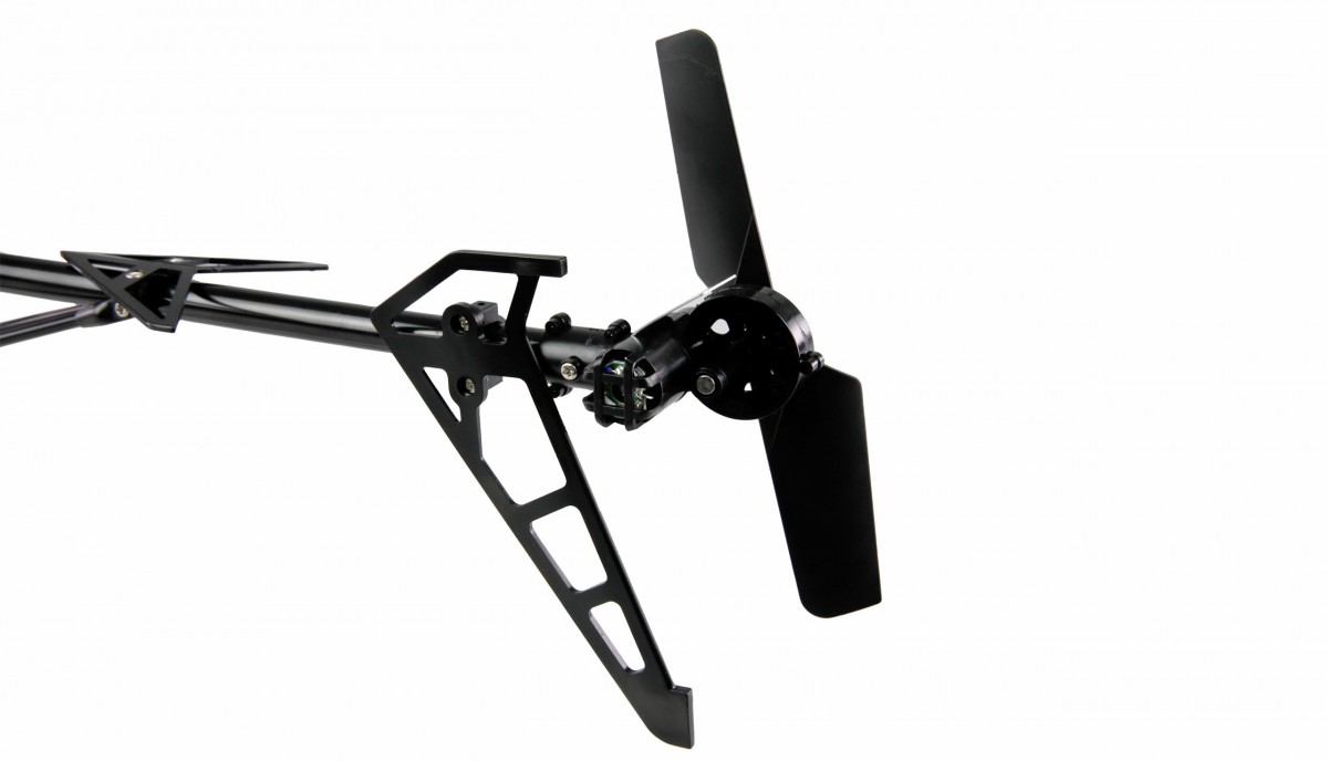 Výkonný ocasní motor s velkou vrtulí pro maximální stabilitu modelu při otáčení (zabraňuje odklonění ocasu při změnách zatížení).