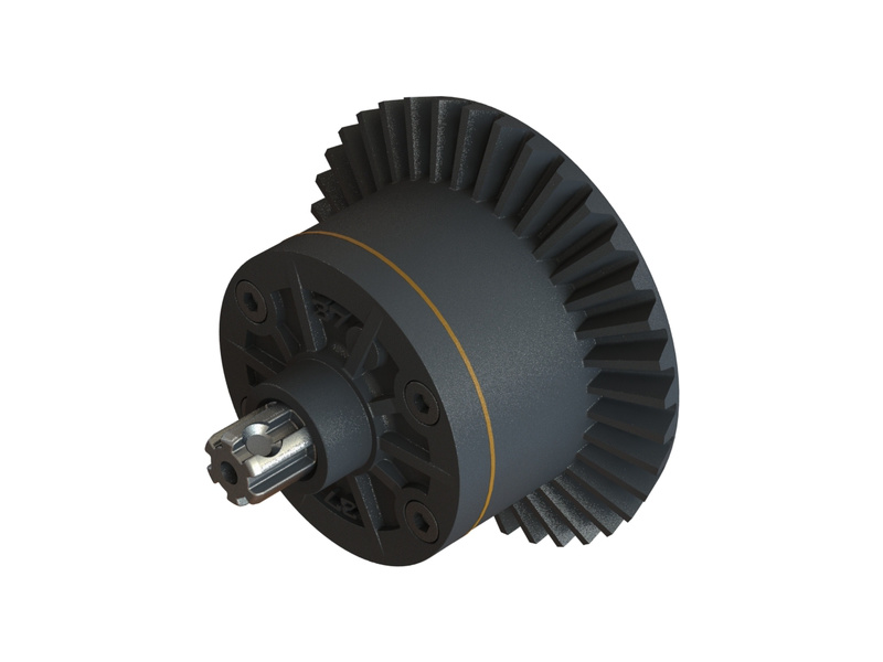 Náhradní díl RC modelu auta Arrma Kraton 4S BLX a Outcast 4S BLX: diferenciál kompletní 37 zubů, modul M1,35. Doporučená hustota oleje 10,000cSt . Smontovaný a naplněný olejem, houževnatá ozubená kola s přímými zuby, difuzní skříň s kuželovým převodem 37T.