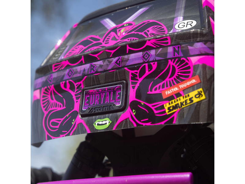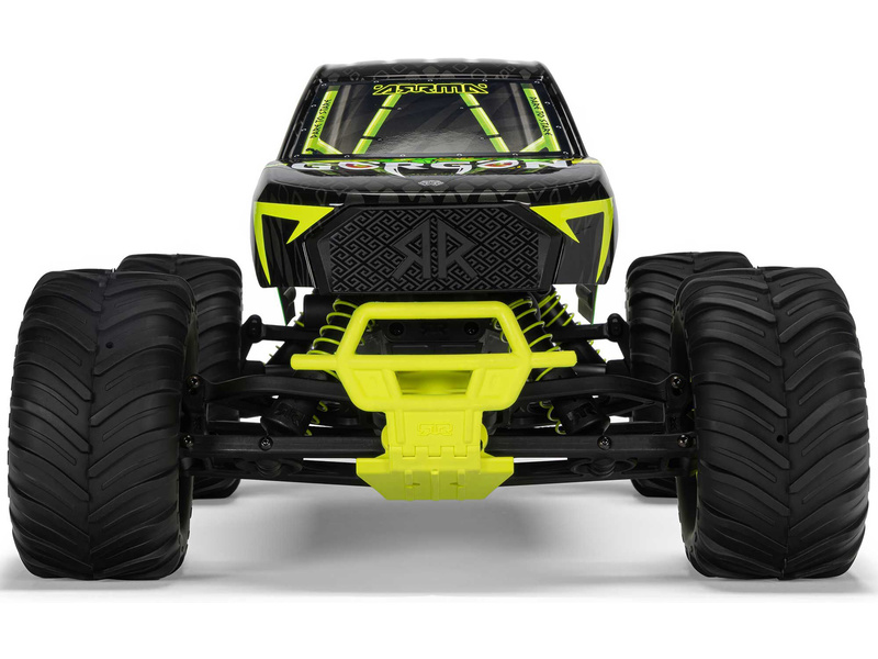 Ihned po vybalení přitáhne Gorgon vaši pozornost díky svému originálnímu vzhledu. Karoserie je z výroby dokončena ve velmi atraktivním moderním stylu a je barevně sladěna s jednotlivými díly šasi, jako jsou pružiny, přihrádka na baterii, kluzné desky a nárazníky. Osvědčená technologie ARRMA má díky kompozitnímu šasi vysokou odolnost. Nezávislé zavěšení, olejové tlumiče a nastavitelná světlá výška zajišťují komfortní jízdu. Pro nezastavitelnou trakci přenáší 2WD převodovka výkon ze stejnosměrného motoru MEGA 550 do masivních pneumatik dBoots ® Chevron o rozměru 130mm, nalepených na nylonových discích 57mm. Použité kovové převody jsou dostatečně odolné i pro případný upgrade na střídavý pohon.