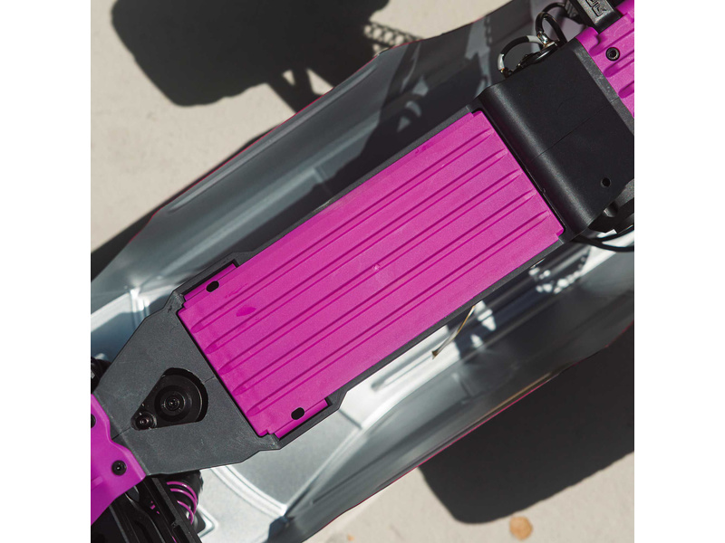 Kompozitní šasi je vyrobeno s odolností ARRMA. GORGON MT má účelnou konstrukci s pevným úzkým šasi, nezávislým zavěšením a olejem plněnými tlumiči pro hladké absorbování nerovností. Přihrádka pro baterii ze spodní strany šasi umožňuje výměnu akumulátoru, aniž byste museli sundávat karoserii.