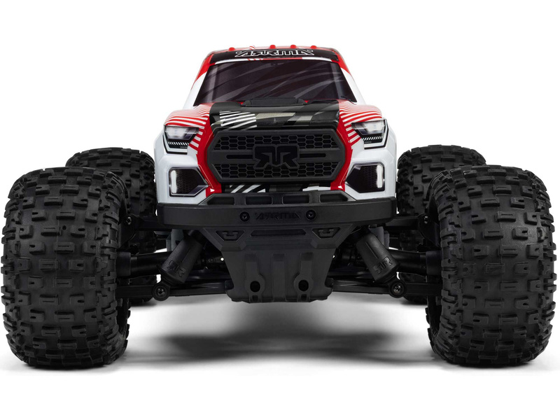 Osvědčená odolná platforma ARRMA® 4X4, vám umožní jezdit vysokou rychlostí téměř v jakémkoli prostředí - v terénu, na šotolině a trávě, na parkovištích i po zpevněných a asfaltových površích. Odolnost šasí vychází ze silného kompozitového podvozku, s prodlouženou výškou chráničů nečistot. Použité kovové převody jsou dostatečně odolné pro střídavý pohon. Výkon je distribuován na jednotlivá kola pomocí přední, zadního a středového diferenciálu. Maximální trakci zajišťují osvědčené pneumatiky dBoots. Vysílač Spektrum SLT poskytuje bezpečný provoz bez výpadků, pro bezstarostnou jízdu jsou na modelu použity voděodolné* komponenty - regulátor s přijímače Spektrum 2-v-1 80A a servo řízení Spektrum S662 s vysokým točivým momentem a kovovými převody.