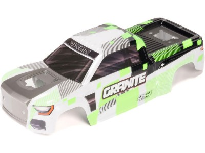 Náhradní díl pro RC model auta Arrma Granite 223S BLX 1:10 4WD: karosérie bezsponková zelená. Nabarvená, oříznutá s aplikovanou grafikou.