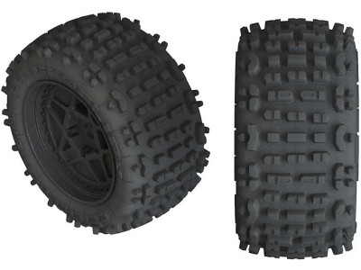 Náhradní díl pro RC model auta Arrma Kraton/Outcast 4S BLX: kolo s pneu Backflip 4S černá (2 ks).