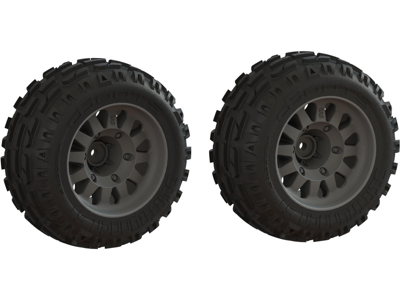 Náhradní díl pro RC modely auta Arrma Mega 550: kolo s pneu dBoots Dirtrunner ST (2). Rozměr ⌀115x52 mm. Unašeč je šestihran 14 mm. Pneumatiky 2.8" dBoots Dirtrunner ST.
