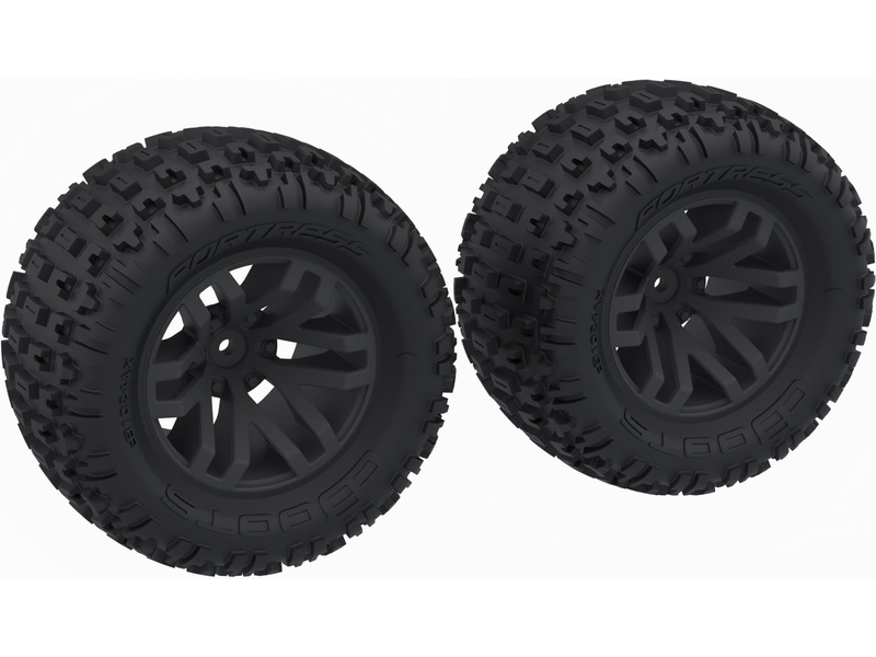 Náhradní díl pro RC model auta Arrma Granite 223S BLX 1:10 4WD: kolo s pneu dBoots Fortress MT , disk černý (2). Rozměry ⌀128x53 mm. Unašeč je šestihran 14 mm. Pneumatiky 2.8" dBoots Fortress MT.