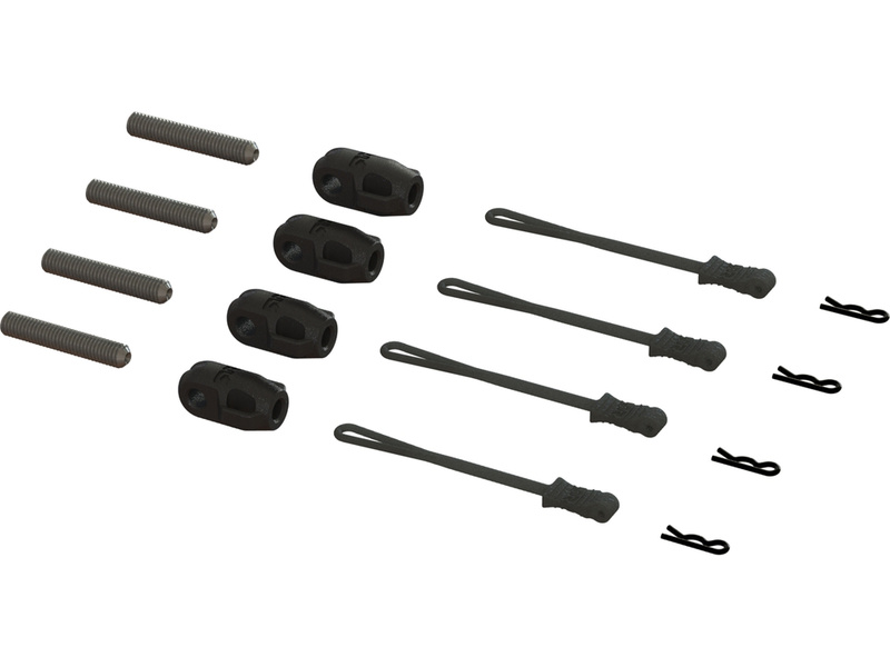 Náhradní díl pro RC model auta Arrma 8S BLX kraton, Outcast: koncovky vzpěr, čepy (4 ks).