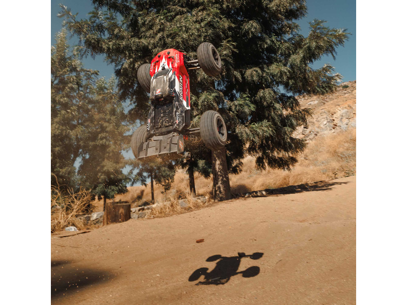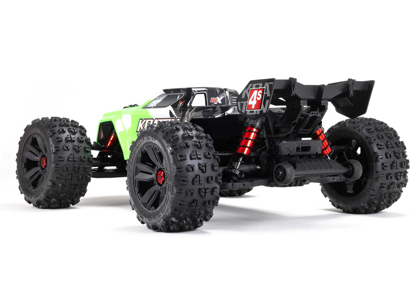 RC model Arrma Kraton 4S V2 BLX je poháněný střídavým motorem s brutální akcelerací a jede rychlostí až 80 km/h. Nově obsahuje výkonnější elektronikou a středový diferenciál. Odolné kompozitní šasi a kovové pohonné ústrojí, olejové tlumiče a detailní karoserie.