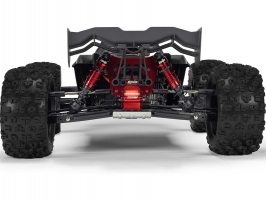 RC model obsahuje 16mm tlumiče z červeně eloxovaného hliníku naplněné olejem, které absorbují i tvrdé dopady a zároveň udržují maximální kontakt s povrchem při jízdě, pro maximální kontrolu. Světlou výšku, respektive předpětí pružin lze jednoduše upravit pomocí matice. Prachovka na pístnici zabraňuje pronikání nečistot.
