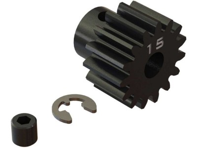 Arrma pastorek na hřídel 5 mm s 15 zuby a modulem ozubení 1 mm pro RC model auta Arrma Kraton 8S BLX. Vyrobeno z sintrované oceli. Součástí balení je červík.