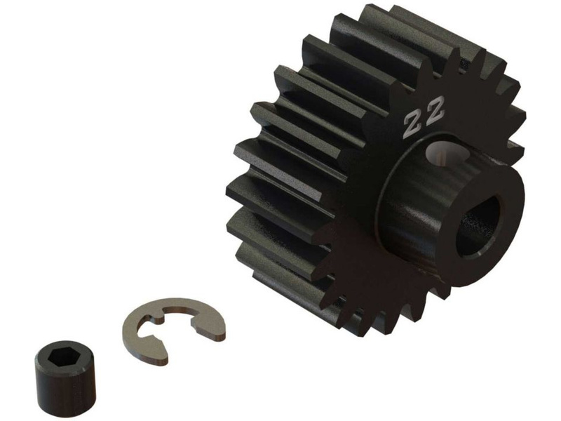 Arrma pastorek na hřídel 5 mm s 22 zuby a modulem ozubení 1 mm pro RC model auta Arrma Kraton 8S BLX. Vyrobeno z sintrované oceli. Součástí balení je červík.