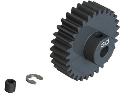 Náhradní díl pro RC model auta Arrma Kraton 1:5 4WD EXtreme Bash Roller: pastorek 30T M1 Safe-D5. čarvík M4 x 4 mm, E-Clip - 3,2mm.