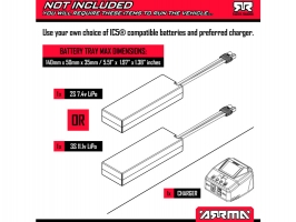 Model lze provozovat na 2 až 3 článkový LiPo akumulátor. Akumulátor by měl být osazen konektorem EC5 nebo IC5. Pro běžné ježdění doporučujeme 2 článkový LiPo akumulátor (7.4 V).