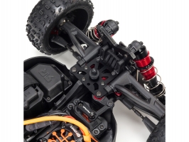 Olejové hliníkové červeně eloxované tlumiče mají ochranné kryty proti poškození při převrácení vozu. TYPHON 6S BLX má kvalitní trvanlivé tlumiče s možností nastavení předpětí pružiny. Tlumiče jsou vybaveny prachovkami proti pronikání nečistot k pístu.