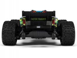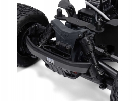 Osvědčená odolná platforma ARRMA® 4X4, vám umožní jezdit vysokou rychlostí téměř v jakémkoli prostředí - v terénu, na šotolině a trávě, na parkovištích i po zpevněných a asfaltových površích. Odolnost šasí vychází ze silného kompozitového podvozku, s prodlouženou výškou chráničů nečistot. Použité kovové převody jsou dostatečně odolné pro střídavý pohon. Výkon je distribuován na jednotlivá kola pomocí přední a zadního diferenciálu. Maximální trakci zajišťují osvědčené pneumatiky dBoots. Vysílač Spektrum SLT poskytuje bezpečný provoz bez výpadků, pro bezstarostnou jízdu jsou na modelu použity voděodolné* komponenty - regulátor s přijímače Spektrum 2-v-1 85A a servo řízení Spektrum S662 s vysokým točivým momentem a kovovými převody.