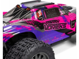 RC model auta Arrma Vorteks 223S BLX typu Truggy s náhonem 4WD, nezávislým zavěšením, olejovými tlumiči a výkonným střídavým pohonem, dosáhne rychlosti až 80 km/h. To vše za dostupnou cenu pro takto výkonný model. Výborné jízdní vlastnosti zajišťuje pohon všech kol se středovým a nápravovými diferenciály. Obsažena je exkluzivní stabilizace jízdy DSC. RC auto je určeno pro děti, dospělé, začátečníky i zkušené jezdce, kteří získají hotový, odolný a rychlý model. To vše je zabaleno do pěkně zpracované karoserie se skrytým bezsponkovým systémem uchycení.