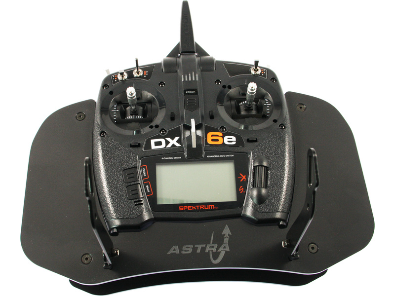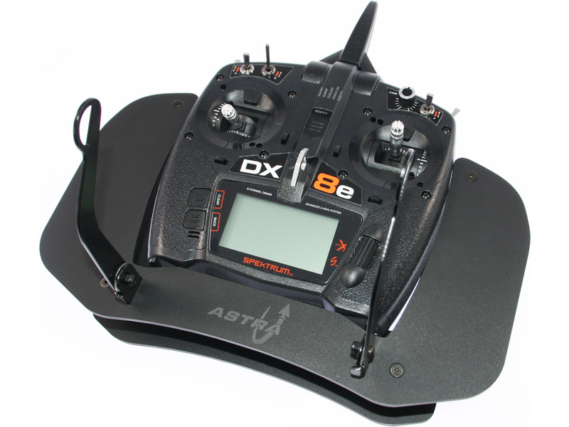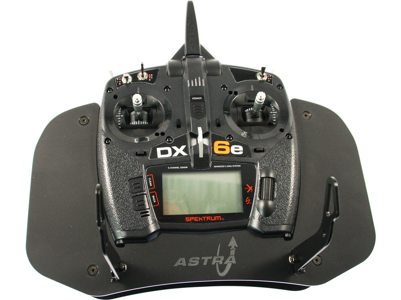 Elegantní pult ASTRA pro RC vysílače Spektrum DX6e/DX8e v černém matném provedení s logem Astra. Nezanechává otisky prstů, nový odolnější materiál. Rozměry 305x190x60mm. Volitelně lze doplnit pohodlný popruh AK1020 nebo křížový popruh AK1021.