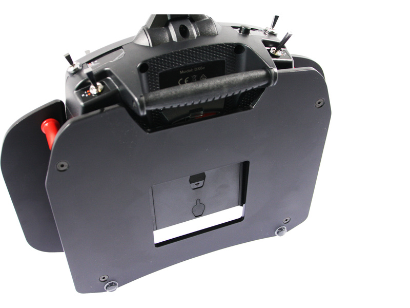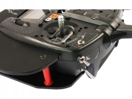 Vysílač Spektrum DX6e/DX8e přesně zapadne do výřezů v horní i spodní desce a pevně v něm drží. Takto sestavený celek můžete vložit jako komplet do svého přepravního kufru.