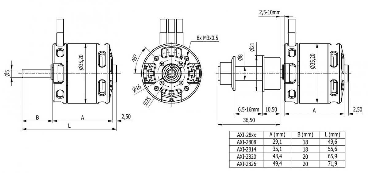 AXI 2826/6 V2 je střídavý motor učený pro pohon modelů s letovou hmotností do 2500 g s napájením z dvou- nebo tříčlánkového akumulátoru Li-poly. Výborně se hodí pro rychlé motorové větroně do 2500 g.