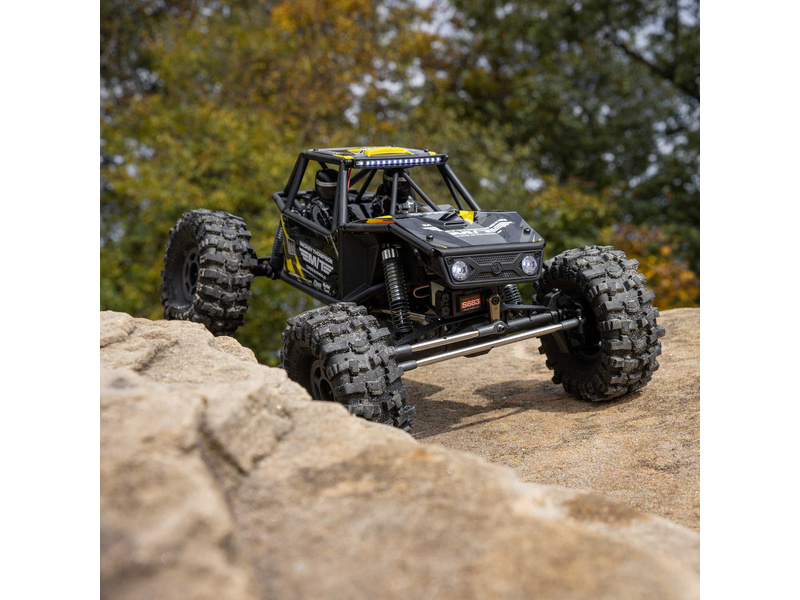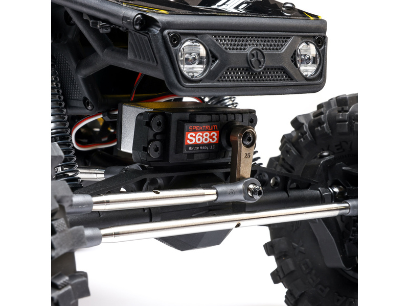 RC auto je určeno do skalnatého terénu a pro soutěžní lezení. Model je kompletně sestaven a připraven k jízdě. K ovládání je přiložena 3-kanálová RC souprava Spektrum DX3 v pásmu 2,4GHz. K základním charakteristikám modelu patří 4-bodové zavěšení náprav, kompletní osazení kuličkovými ložisky, velká světlá výška s portálovými nápravami Currie F9, řízená přední i zadní náprava pro maximální manévrovatelnost. Pomocí tlačítka třetího kanálu přiloženého vysílače Spektrum™ DX3™ můžete řídit zadní nápravu ve třech polohách (úplně doleva, úplně doprava, rovně). Vysílač DX3 lze naprogramovat i pro 5 polohové řízení zadní nápravy pro ještě větší možnosti a variabilitu, což oceníte zejména při závodní jízdě.