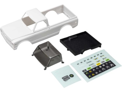 Náhradní díl pro RC model auta Axial SCX30 K10: karosérie. Vyrobeno z bílého ABS plastu. Včetně čirých oken, výplně korby a archu samolepek.
