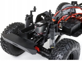 Realistické, vysoce pevné šasi SCX10™ II je sestaveno z ocelových C-podélníků s příčnými výztuhami pro zvýšení tuhosti. Tvarovaná kluzná deska výrazně snižuje zasekávání a díky zjednodušenému designu je údržba rychlá a snadná. Pro variabilitu model dále obsahuje nastavitelný držák na karosérii, nastavitelné držáky na nárazník s upevňovacími body stabilizátorů a lože serva pro volitelnou dvourychlostní převodovku.