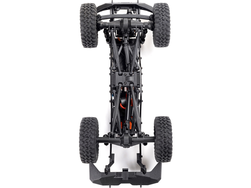 Stejně jako platforma většího podvozku SCX10™ II v měřítku 1:10, má i podvozek SCX24™ robustní ocelové rámové podélníky s profilem C, které zajistí vysokou tuhost a pevnost podvozku a udržují podvozek dostatečně tuhý i při velkém překroucení náprav.