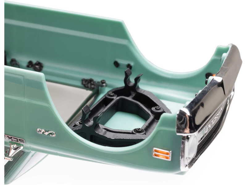 Karoserie z tvrdého vstřikovaného ABS materiálu je plná detailů pro autentický vzhled v měřítku. Nechybí čirá okna, přední mřížka chladiče, zrcátka, kliky dveří a rám korby. Úchvatný vzhled doplňuje přední bílé a zadní červené LED osvětlení.