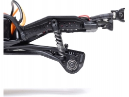 Vysoce výkonný podvozek s vícebodovým zavěšením přímých náprav obsahuje i zkosené ochranné kryty, které vám pomohou překonat náročné překážky. Tento prvek se obvykle nachází pouze u velkých crawlerů. Zkosené nápravy a ramena s vysokou světlou výškou pomáhají předcházet zasekávání o překážky.