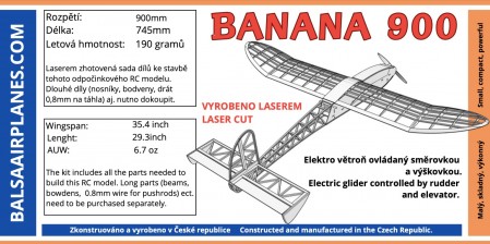 Model Banana o rozpětí 900mm vznikl na základě volně létajícího modelu Banana Fritter, který byl poháněn gumovým svazkem. Jeho poměrně atypický tvar trupu se mi líbil a tak vznikla myšlenka tento model zvětšit, vybavit RC komponenty a především elektromotorem.