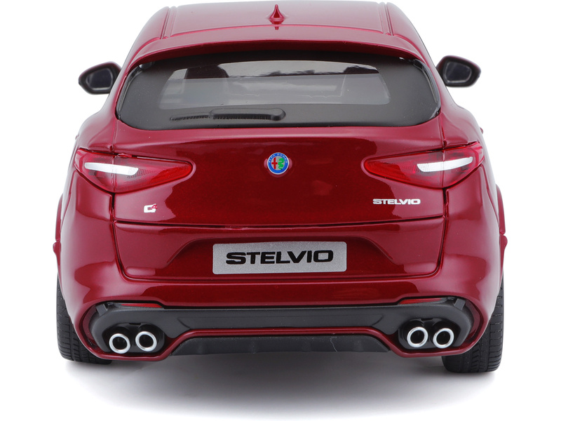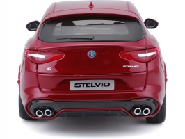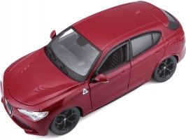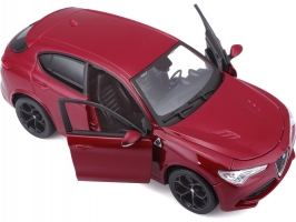 Kovový model auta 1:24 Bburago 18-21086 Alfa Romeo Stelvio, nejen pro sběratele. Má otevírací dveře a je v detailním provedení. Barva modelu je červená.
